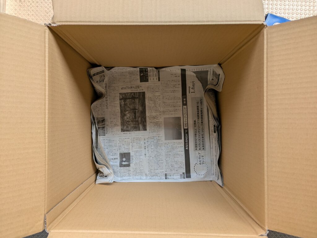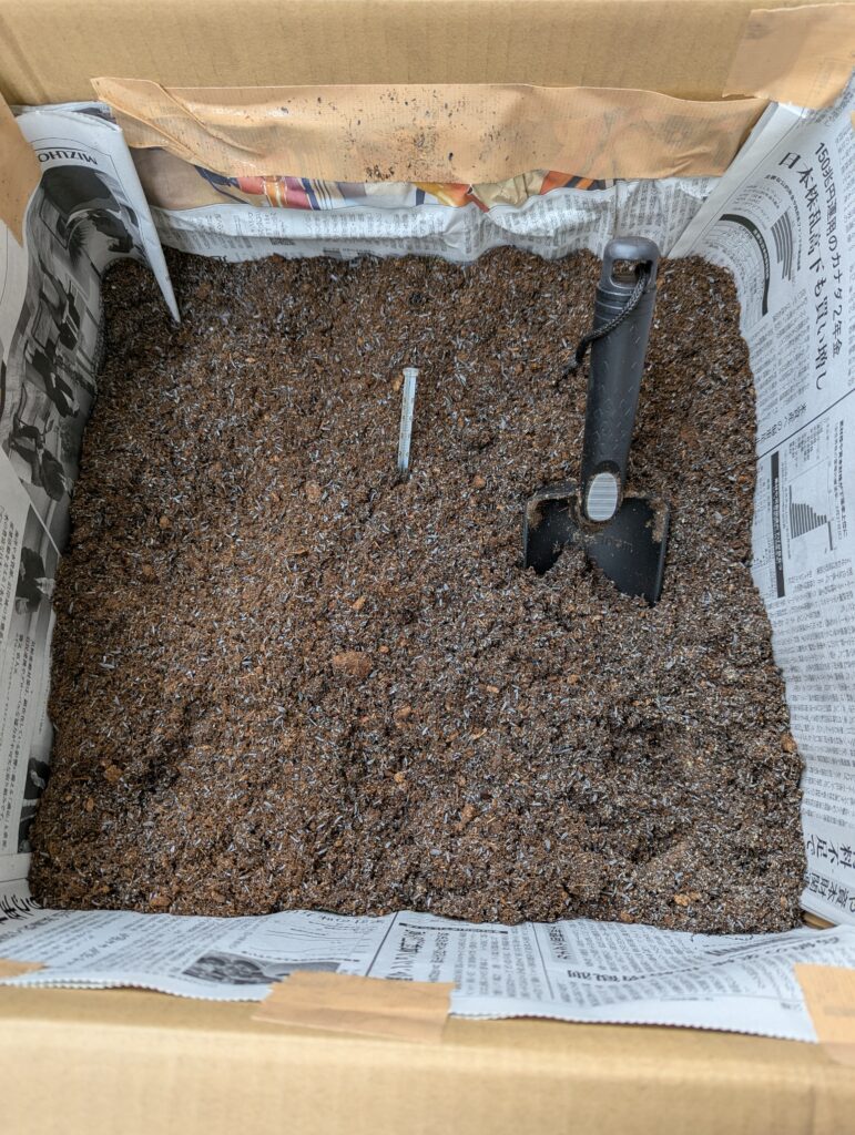 - 底・側面の補強: 底には古新聞を厚めに敷きました。写真には写っていませんが側面もガード。これで少しでも長持ちさせます。