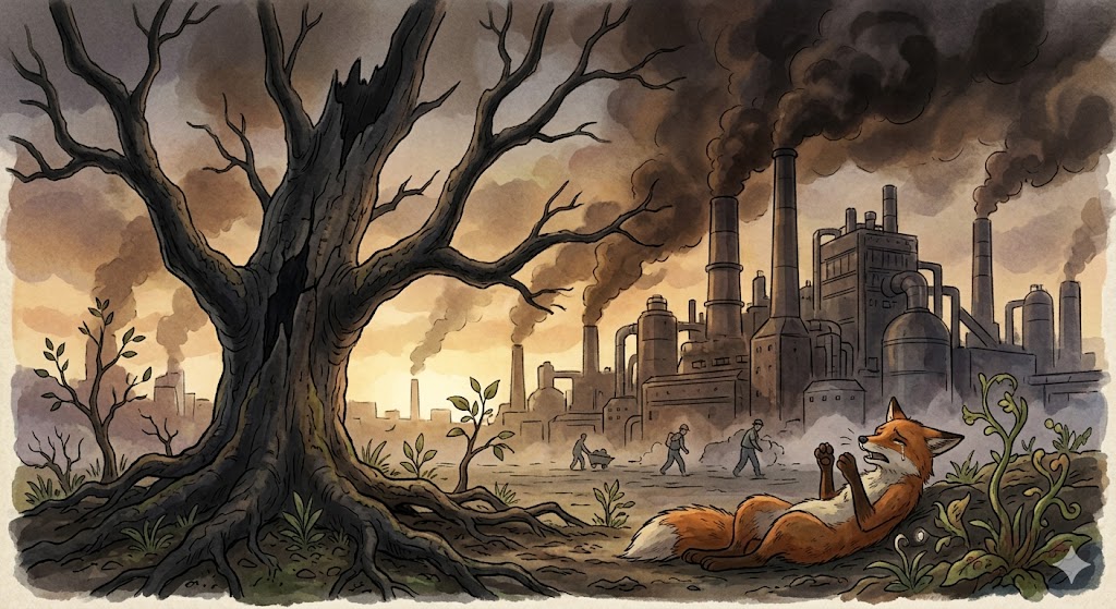 • 狐(未来の地球や子供たち): 今はまだ大きな文句は言えないけれど、じわじわと苦しんでいる。
