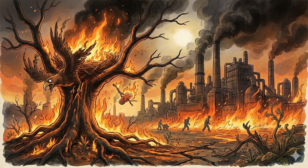 現代の「鷲」は、工場や車から**二酸化炭素(CO2)**をたくさん出し続け、今の便利で豊かな暮らしを楽しんでいる、私たち人間かもしれません。